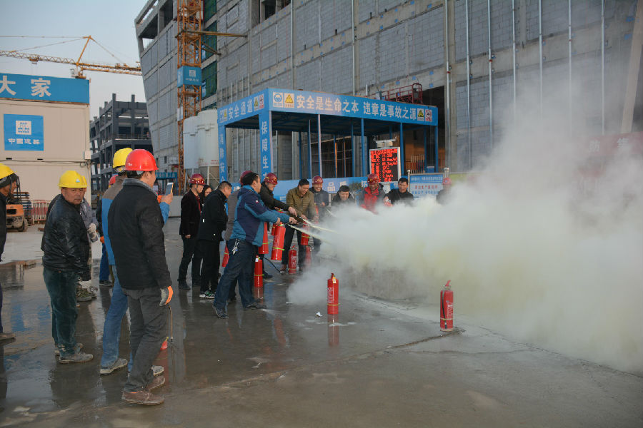 活動共分為三個部分。第一部分為安全生產培訓,通過觀看安全生產教育視頻資料、工程部經理結合項目實際宣貫施工現場消防安全法律法規及總工對安全生產工作再部署、再強調、再落實等方式,開展了一期卓有成效的安全生產培訓活動;第二部分為辦公場所應急疏散演練,通過模擬項目部辦公區域發生火情,員工有序緊急疏散的方式,提高員工消防安全自救能力;第三部分為滅火實踐演練,在工地現場模擬火情,員工實際操作滅火器進行滅火,極大地增強了員工滅火動手能力。